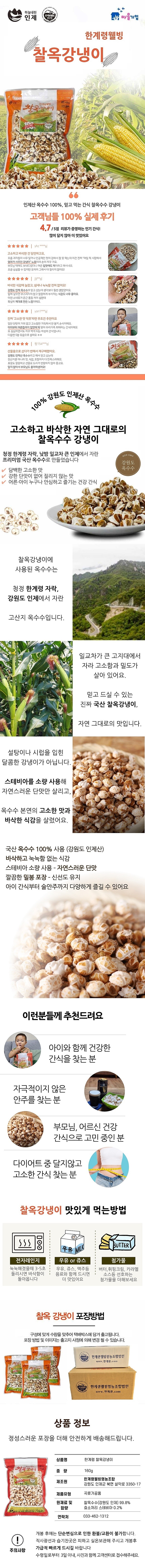 - 강원 인제의 옥수수만으로 만들어 더욱 고소하고 바삭한 강냉이